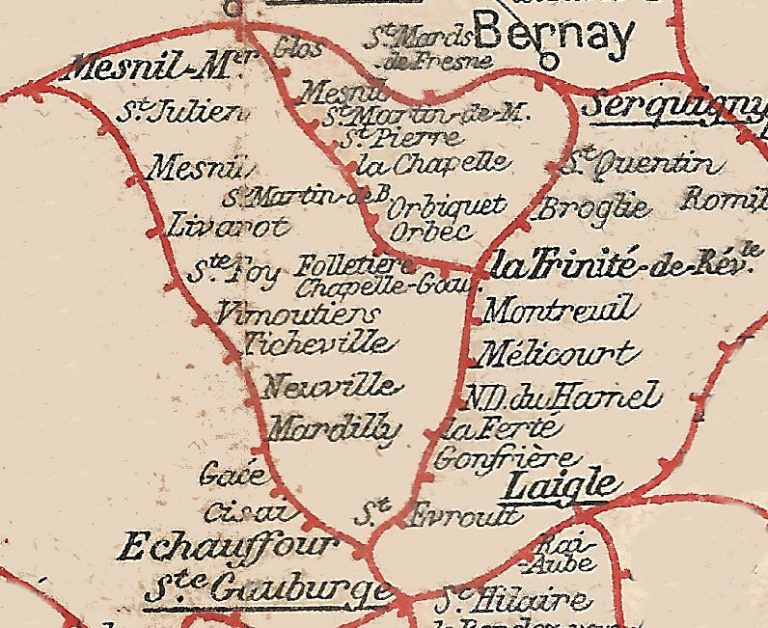 A Echauffour, au nord de Ste Gauburge, se détache un ligne vers Bernay (Paris-Cherbourg) afin de rejoindre Rouen
